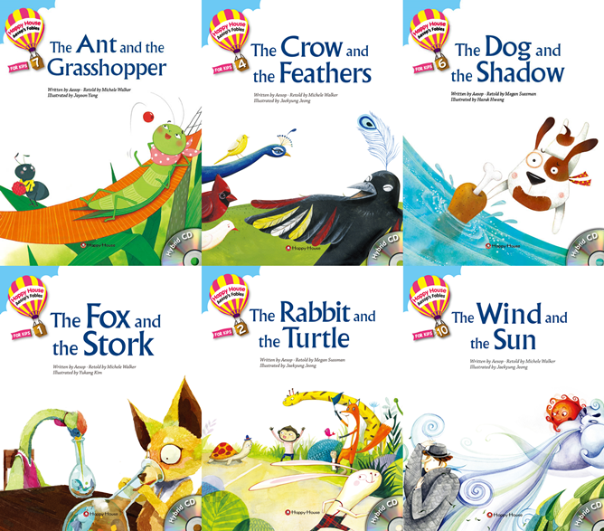 韓国の語学系教育出版社Happy Houseによる、英語学習のためのイソップ物語のシリーズです。全10タイトルのこのシリーズには、『北風と太陽』(The Wind and the Sun),『アリとキリギリス』(The Aunt and the Grasshopper)、『ウサギとカメ』(The Rabbit and the Turtle)など子どもも大人も一度は読んでおきたい有名なイソップ物語が含まれています。